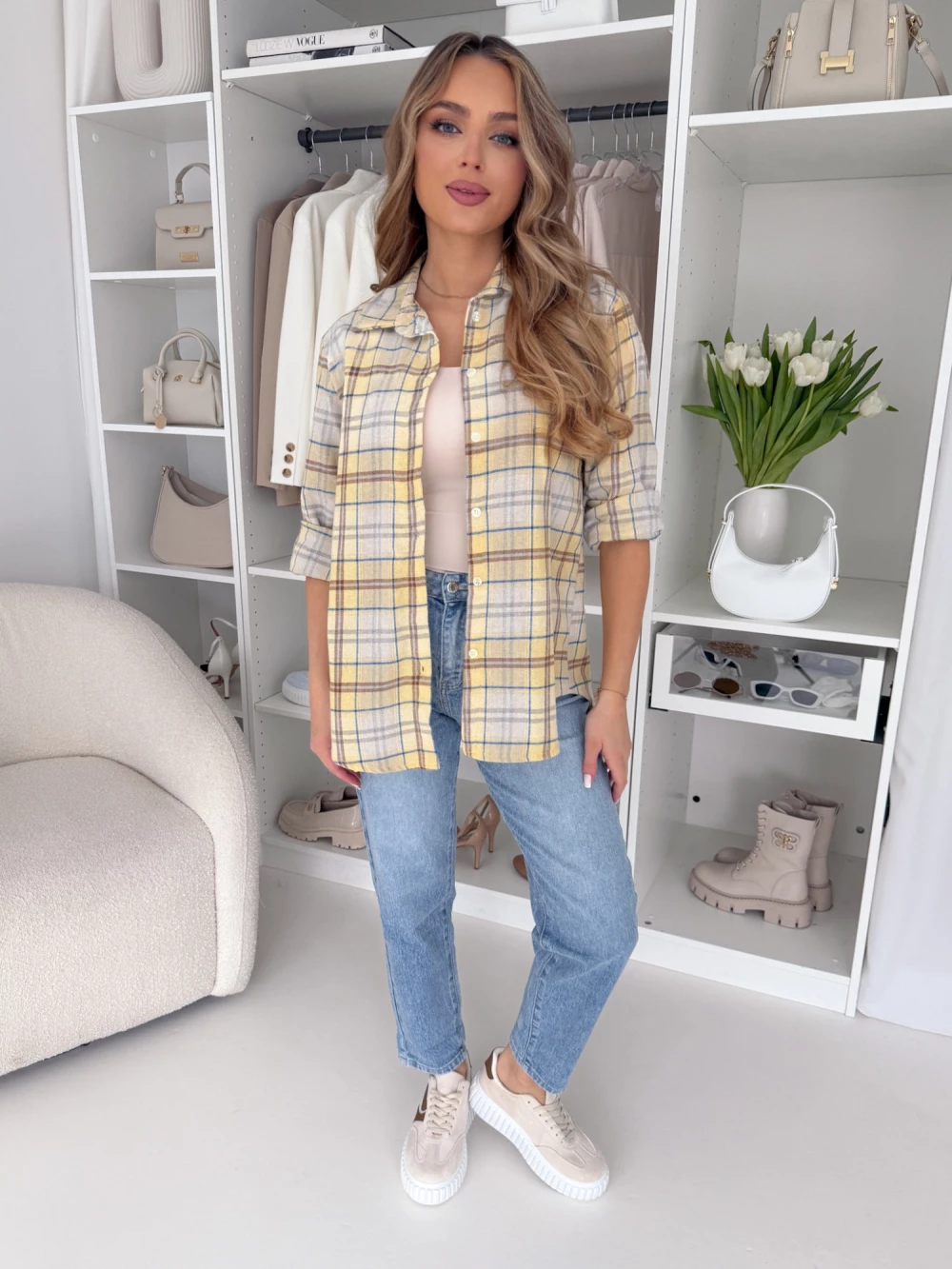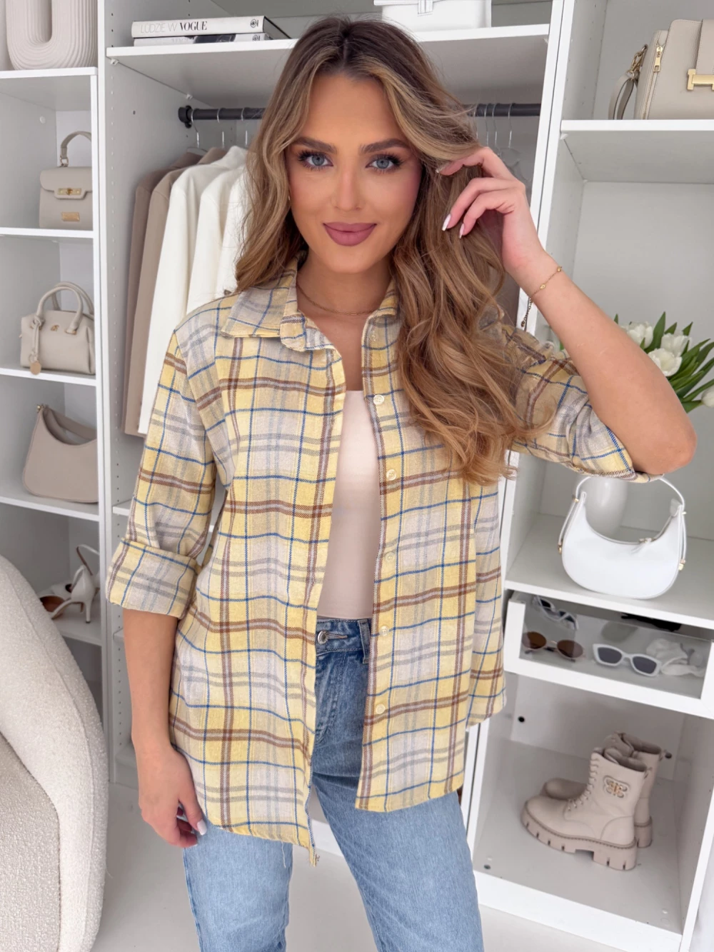 Bawełniana koszula flanelowa żółta w karmelową kratkę Hani