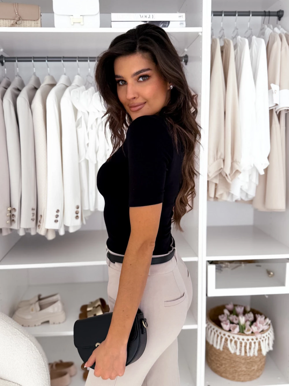Bluzka wiskozowa Corti z okrągłym dekoltem czarna