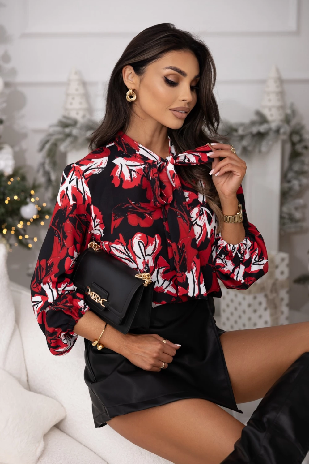 Bluzka polskiej produkcji. Jednokolorowa bluzka z długim rękawem zakończonym gumeczką. Rozmiarowa bluzka ze stójką i krawatem. Elegancka bluzka, która sprawdzi się na specjalne okazje.