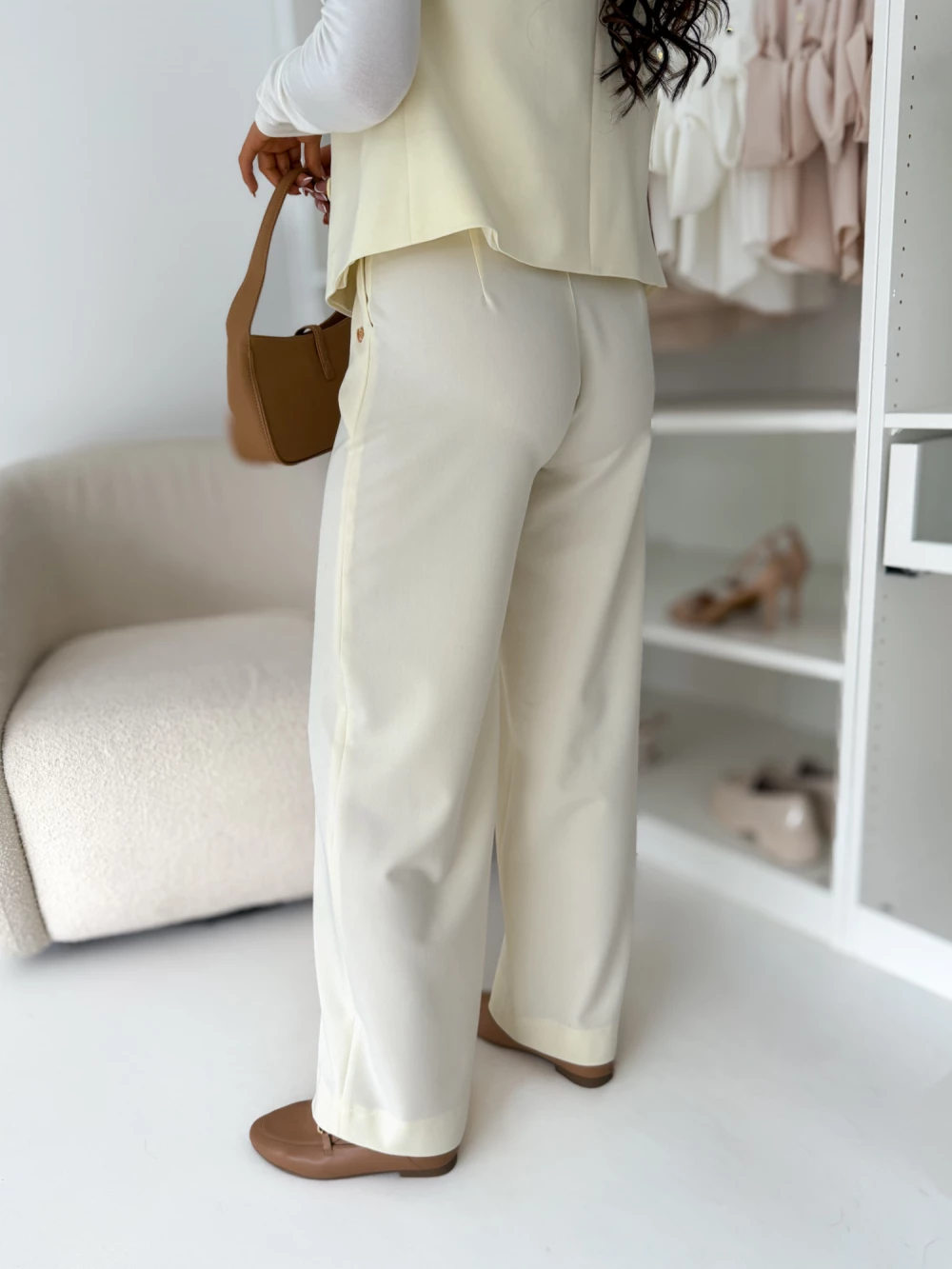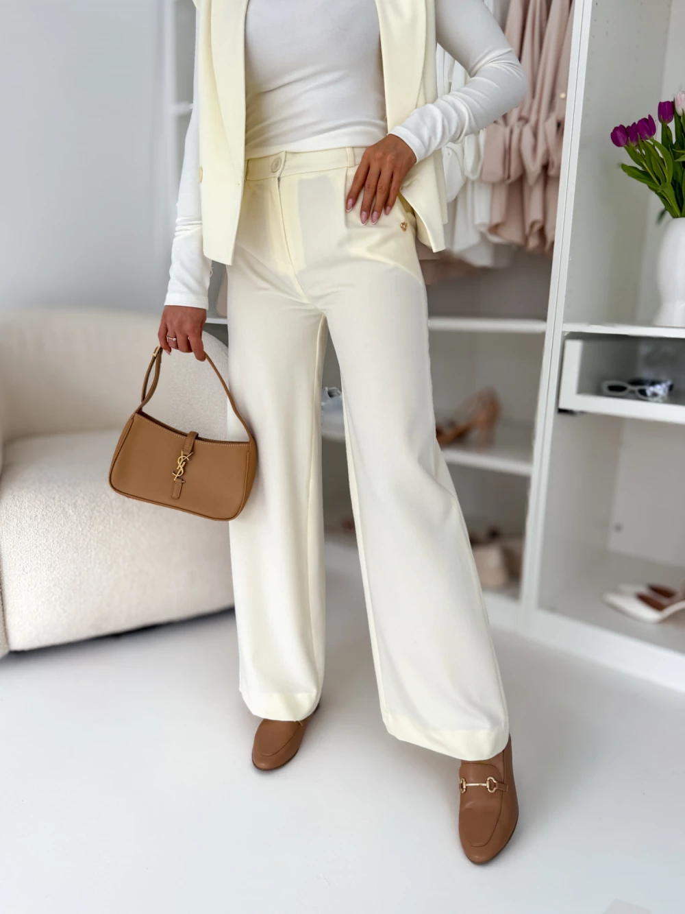 Eleganckie spodnie z prostą nogawką ecru Venus