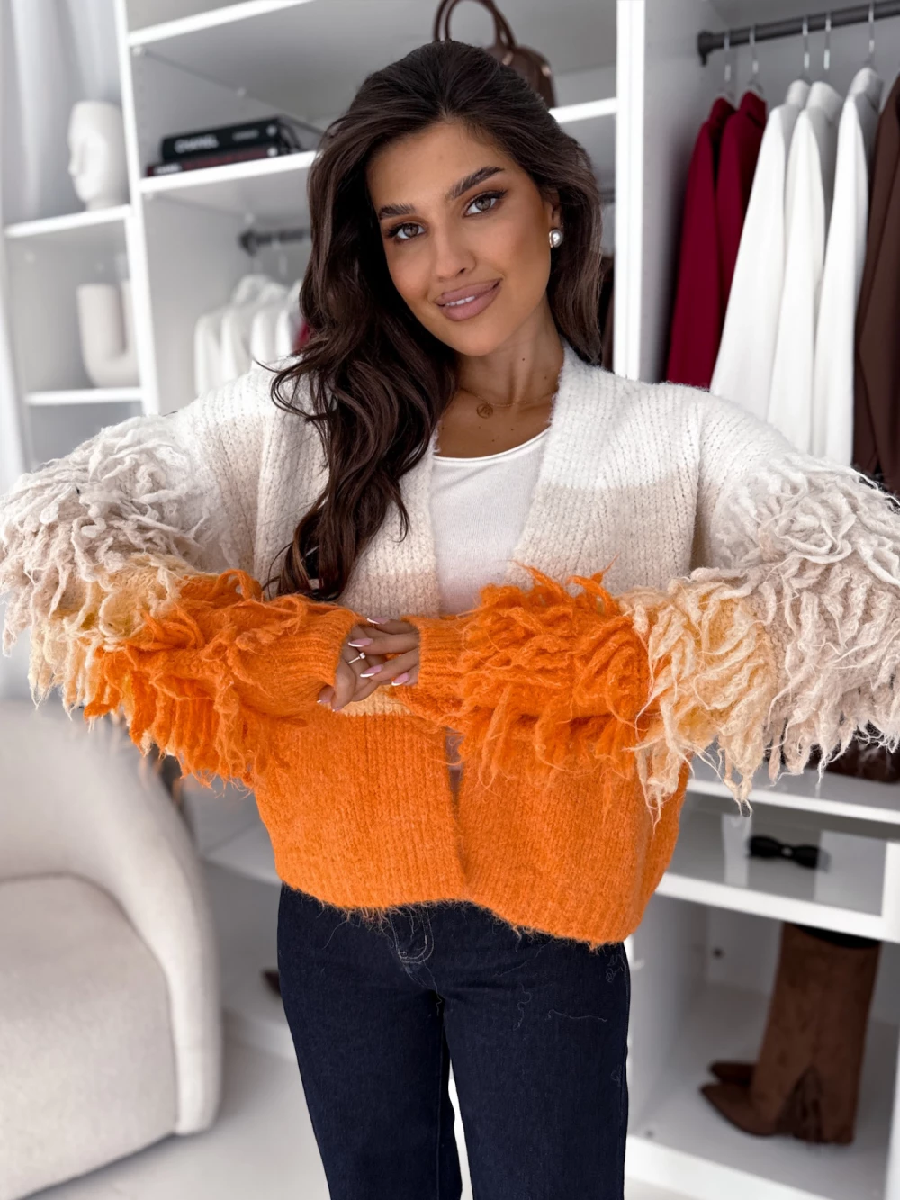 Kardigan w pomarańczowe paski Chick z ozdobnymi frędzlami