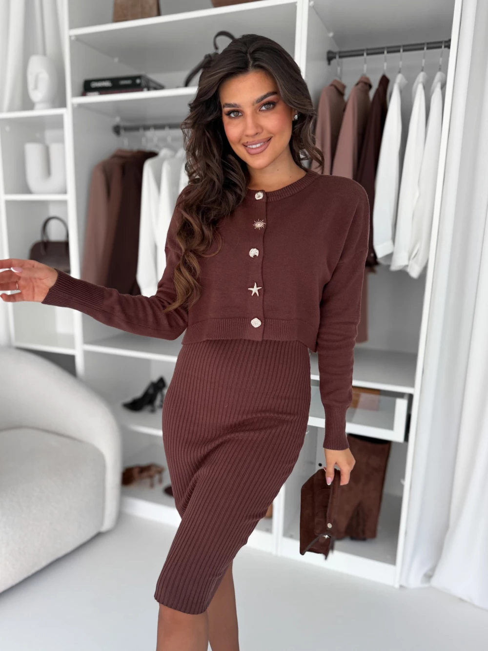 Komplet wiskozowy sweter & sukienka Soleil czekolada
