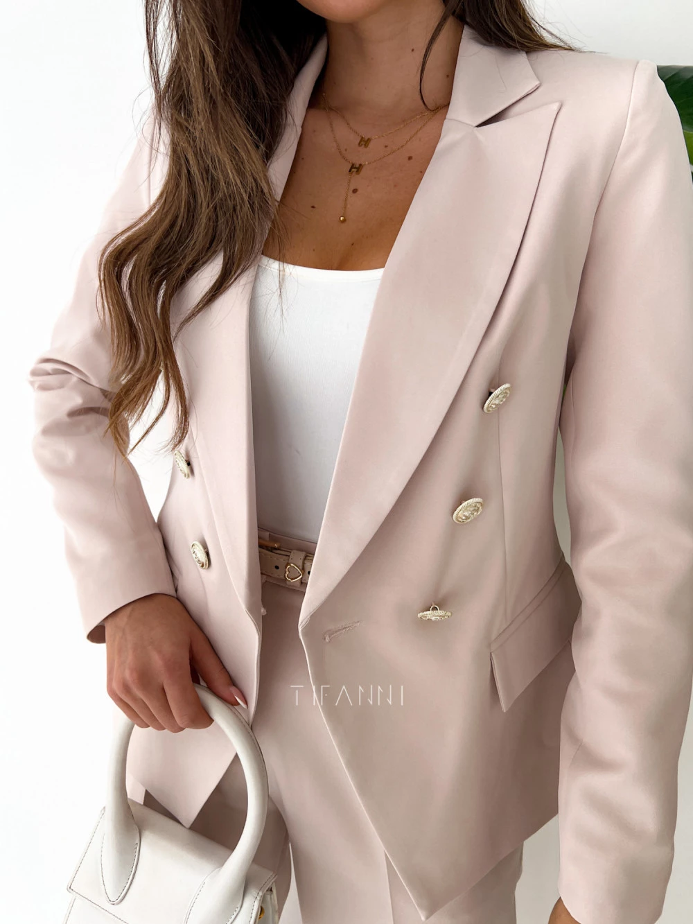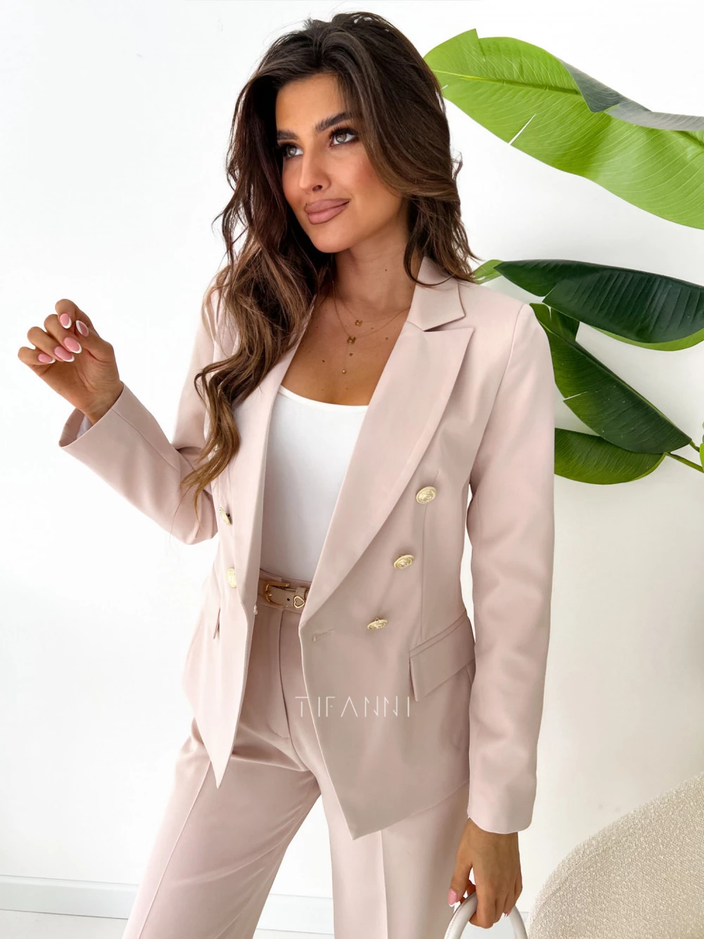 Marynarka dwurzędowa Glamour beżowa