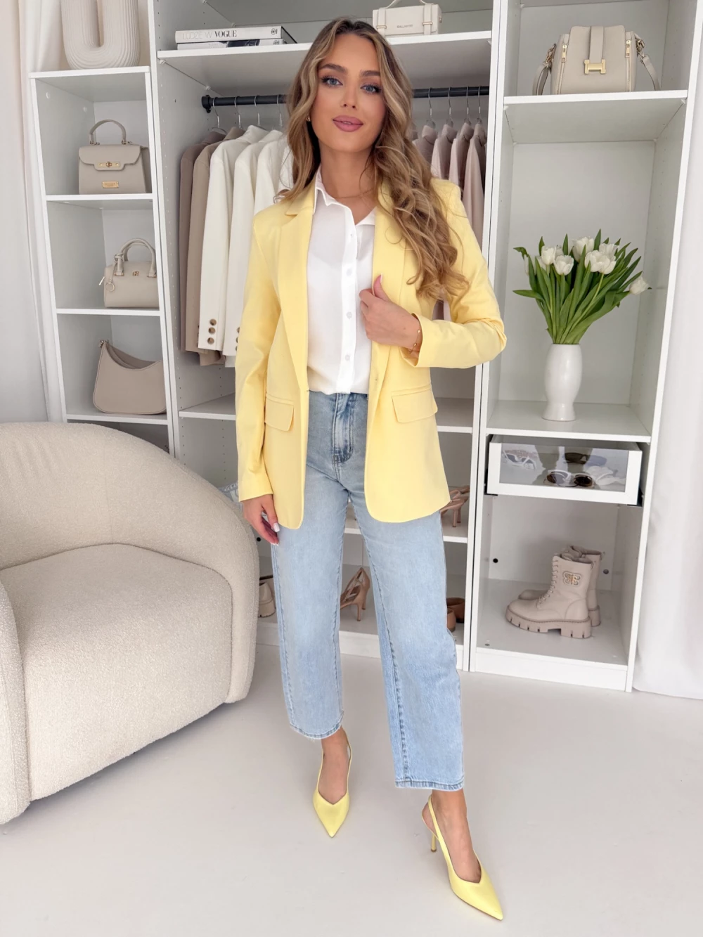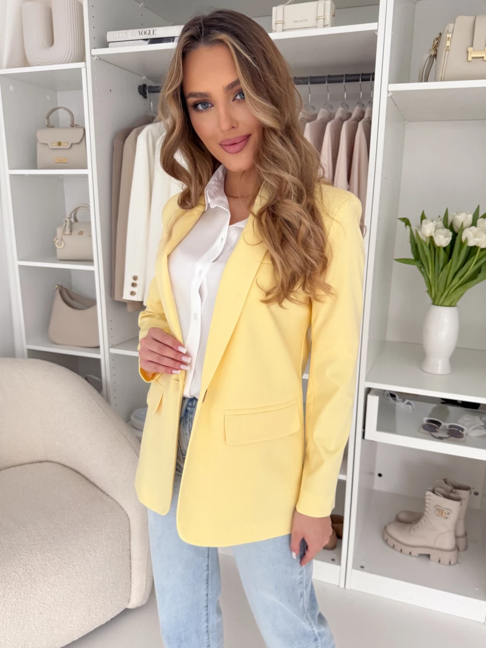 Marynarka klasyczna gładka na jeden guzik Fergie pastelowa cytrynka EDAN