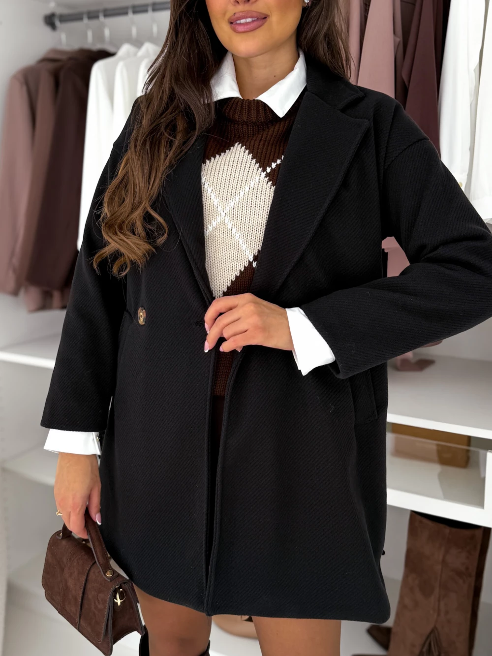 Płaszcz prążkowany Marbela czarny