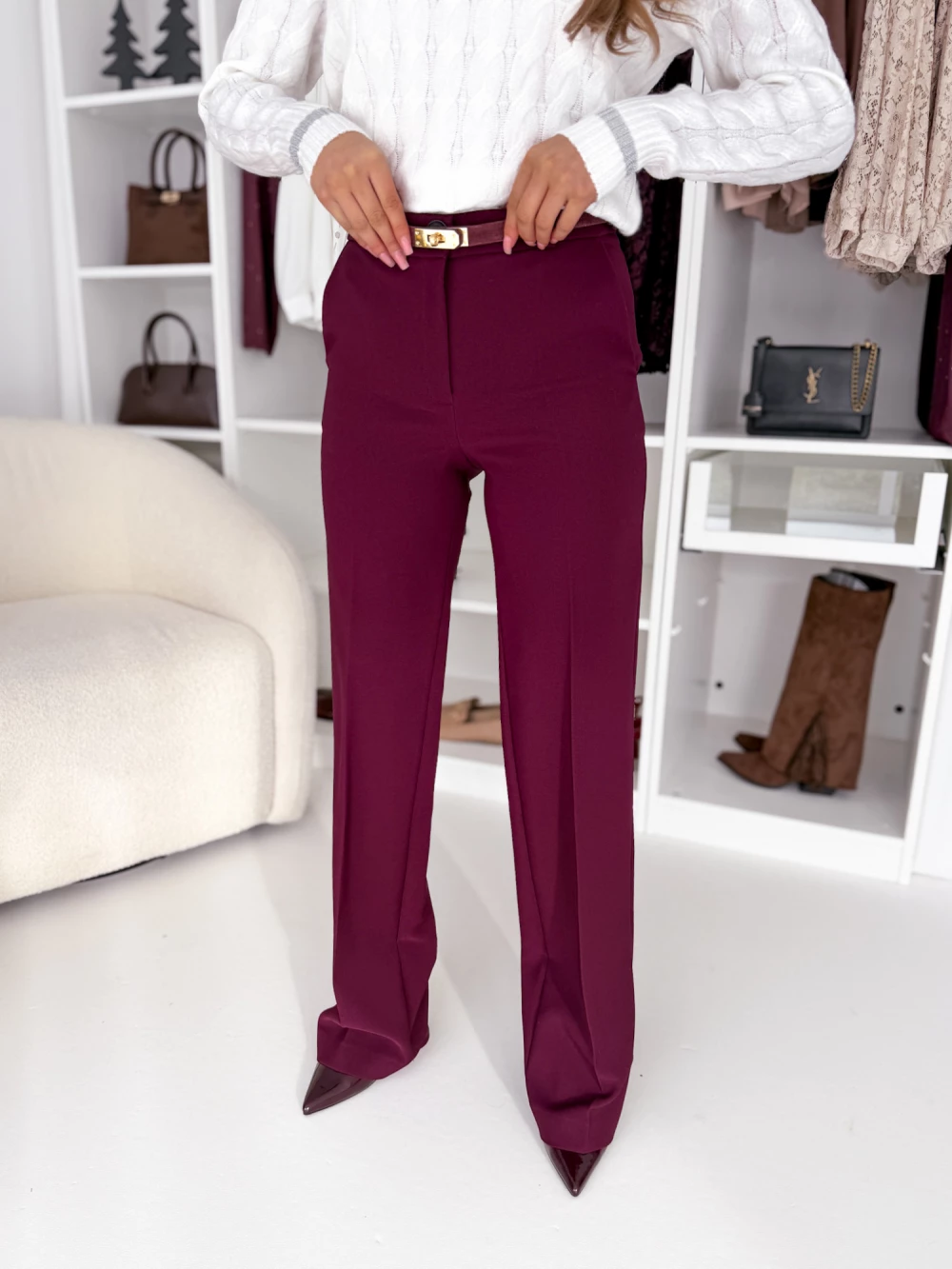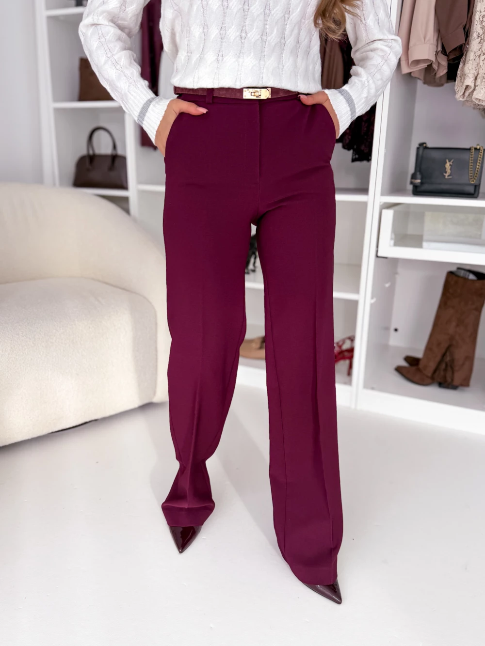Spodnie burgundowe Empire EDAN z gumką