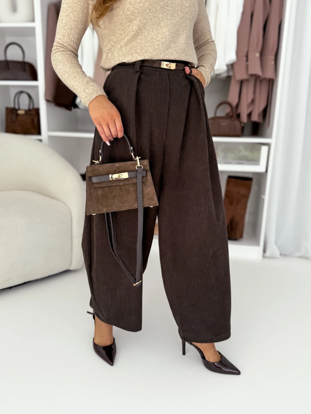 Spodnie sztruksowe czekoladowe Brita