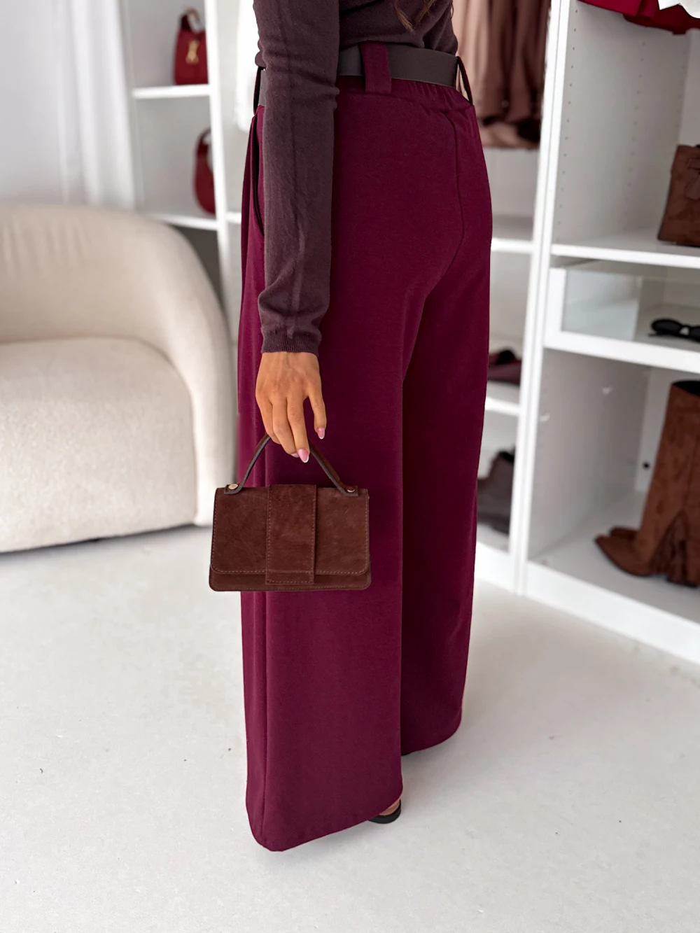 Spodnie z prostą nogawką z wszytą gumką bordowe Nadi Klari
