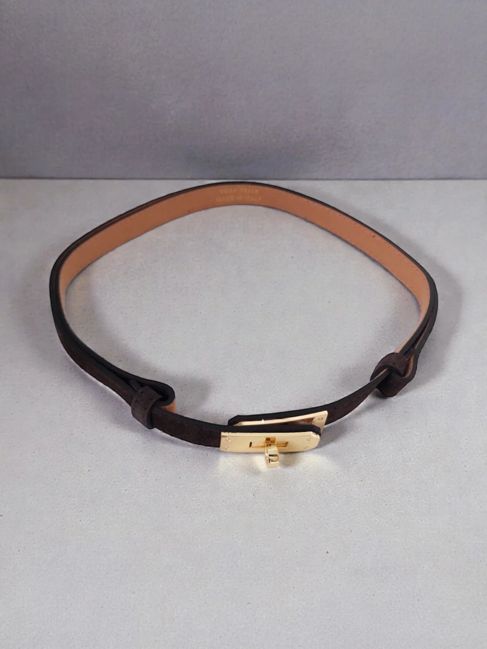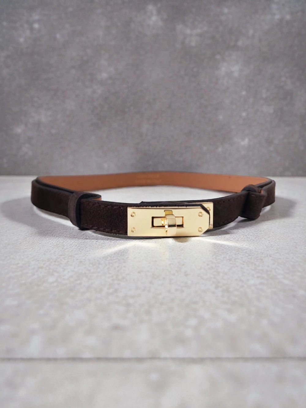 Subtelny regulowany pasek z zamszu naturalnego ciemny brąz