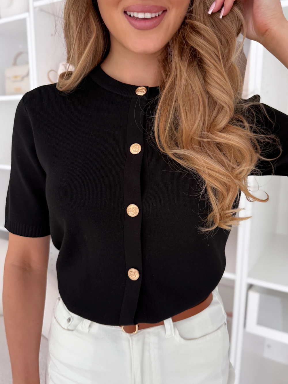 Sweter rozpinany z krótkim rękawkiem Linea czarny