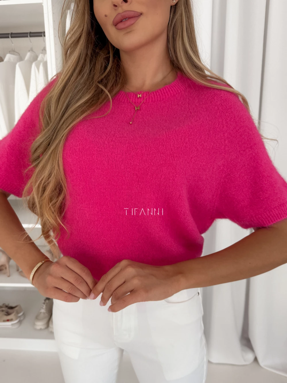 Sweter z krótkim rękawkiem fuksja Daily