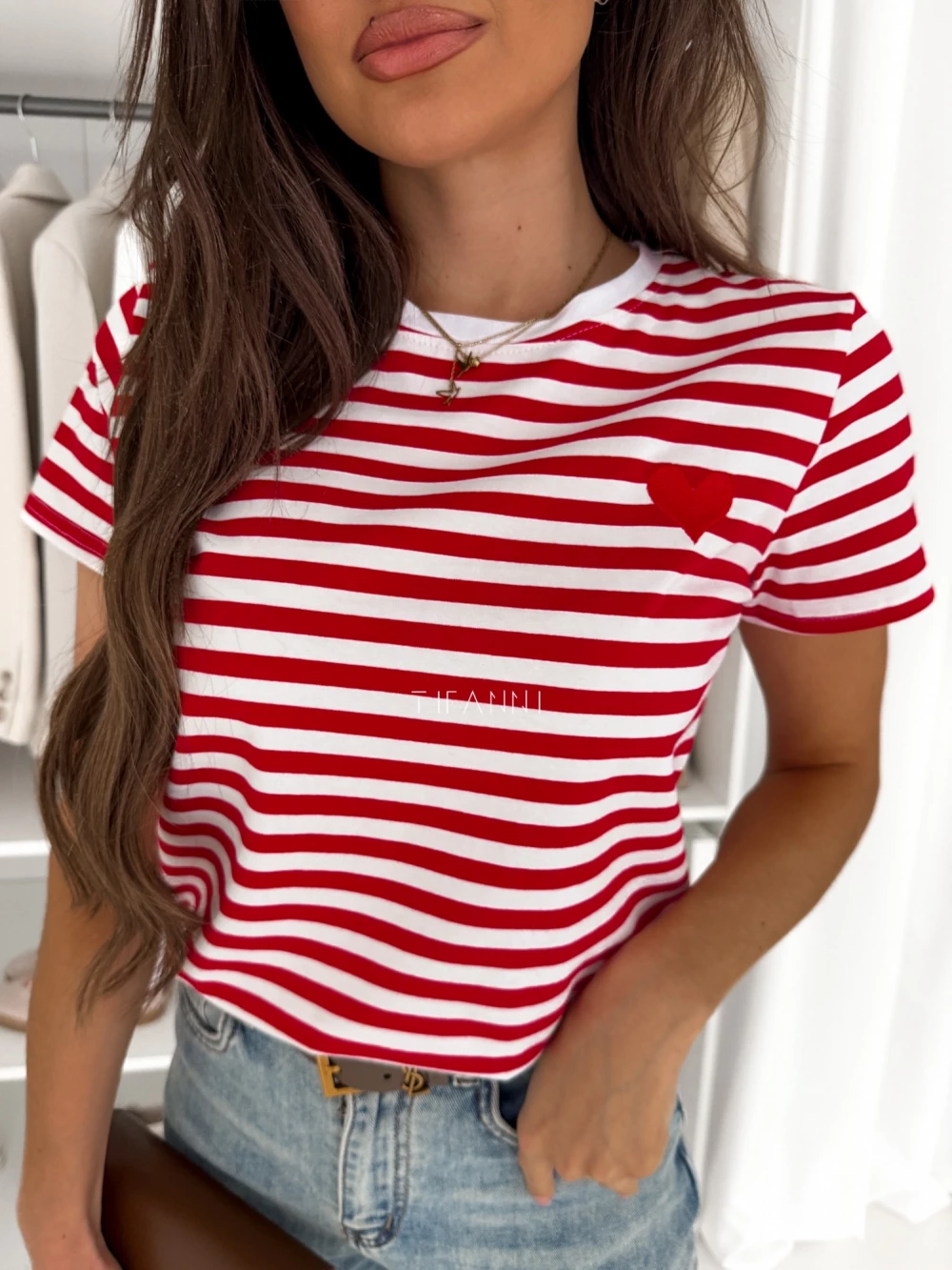 T-shirt w czerwone paski i wyszytym sercem Rio